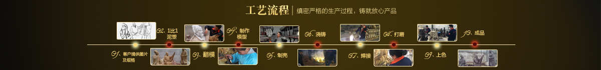制作一件完美的鑄銅雕塑,最重要的步驟就是制作泥塑模型,然后再用工業(yè)硅膠拓印、翻模。所以泥塑的姿態(tài)、神情生動(dòng)與否直接影響最終銅雕塑的品質(zhì)。所以我廠一直對泥塑模型的制作格外重視。我廠以雕塑為本,以藝術(shù)為根,挾中華文化之傳統(tǒng),偕歐陸藝術(shù)之風(fēng)韻,風(fēng)格獨(dú)特,盡顯淋漓盡致。我們本著大膽創(chuàng)新、勇于突破的精神,以追求卓越為導(dǎo)向,堅(jiān)持寧缺勿濫為原則,并可依照您提供的要求,為您量身設(shè)計(jì)制作。我廠人才濟(jì)濟(jì),有智慧嚴(yán)謹(jǐn)?shù)墓芾戆嘧?,眾多年輕充滿激情、充滿創(chuàng)意的專業(yè)設(shè)計(jì)團(tuán)隊(duì)、有專業(yè)技術(shù)精湛的雕塑制作人才和專業(yè)的施工隊(duì)伍。他們不僅具深厚的文化藝術(shù)底蘊(yùn),更汲取當(dāng)代雕塑精華,博采眾家之長,作品既有嚴(yán)肅莊重寫實(shí)題材,也有輕松前衛(wèi)的抽象題材,表現(xiàn)手法上浪漫主義中不乏樸實(shí),現(xiàn)實(shí)主義中蘊(yùn)涵著激情,設(shè)計(jì)理念貫穿古今、融匯中西,深刻詮釋著藝術(shù)的精髓,把古典主義和后現(xiàn)代主義完美的融合,將雕塑藝術(shù)演繹為力的凝聚、美的體現(xiàn),讓人們感受到的不僅是一種藝術(shù)的浪漫與優(yōu)雅、粗獷與悲壯、更是豐富的優(yōu)秀藝術(shù)寶藏和文化傳統(tǒng),讓您在藝術(shù)與文化中穿流,在時(shí)空中飄蕩,使靈魂在藝術(shù)的海洋洗禮。 MORE+